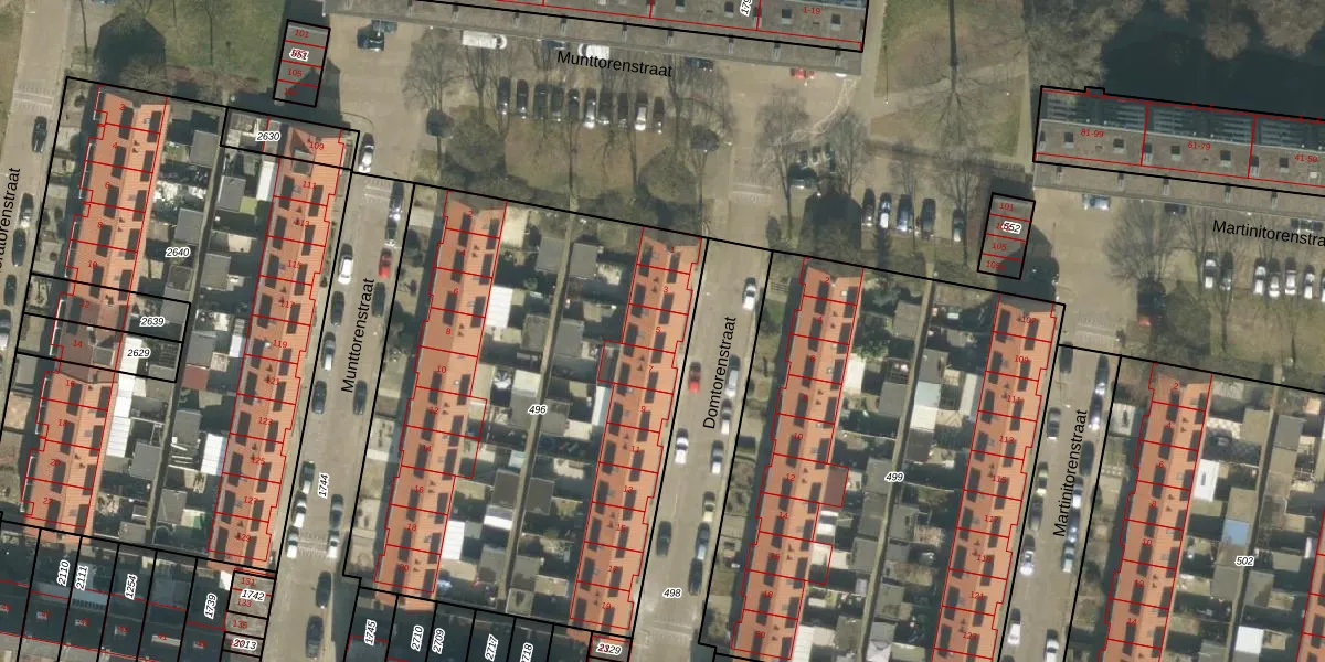 Het perceel waarop Domtorenstraat 5 staat heeft een oppervlakte van 2757 m². Dit is een zeer groot perceel. De perceeloppervlakte wordt geregistreerd door het Kadaster. Gedetailleerde informatie over de maten van dit perceel kunt u vinden in het rapport Kadastrale kaart met maatvoering van Domtorenstraat 5.