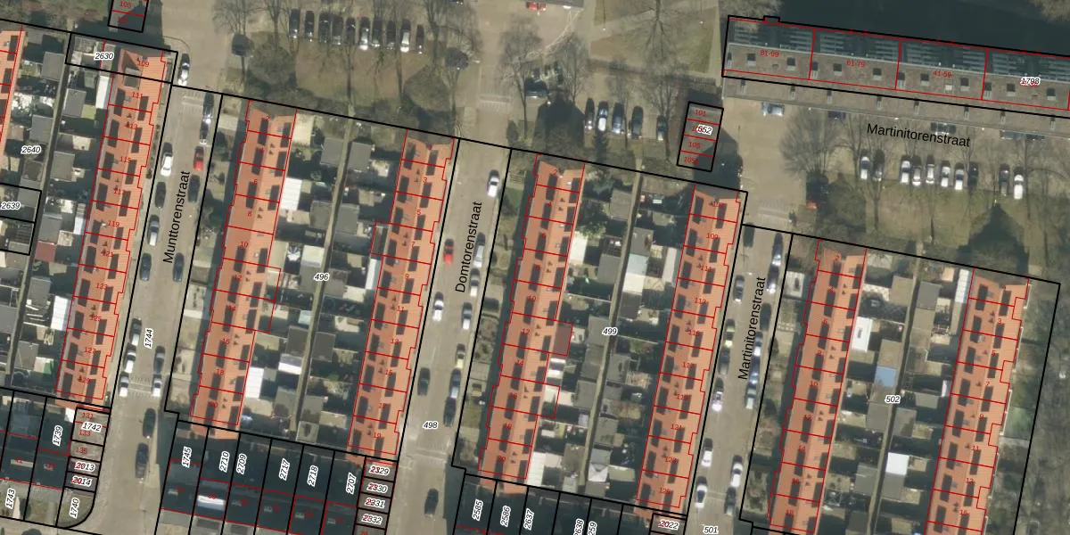 Het perceel waarop Domtorenstraat 8 staat heeft een oppervlakte van 2756 m². Dit is een zeer groot perceel. De perceeloppervlakte wordt geregistreerd door het Kadaster. Gedetailleerde informatie over de maten van dit perceel kunt u vinden in het rapport Kadastrale kaart met maatvoering van Domtorenstraat 8.