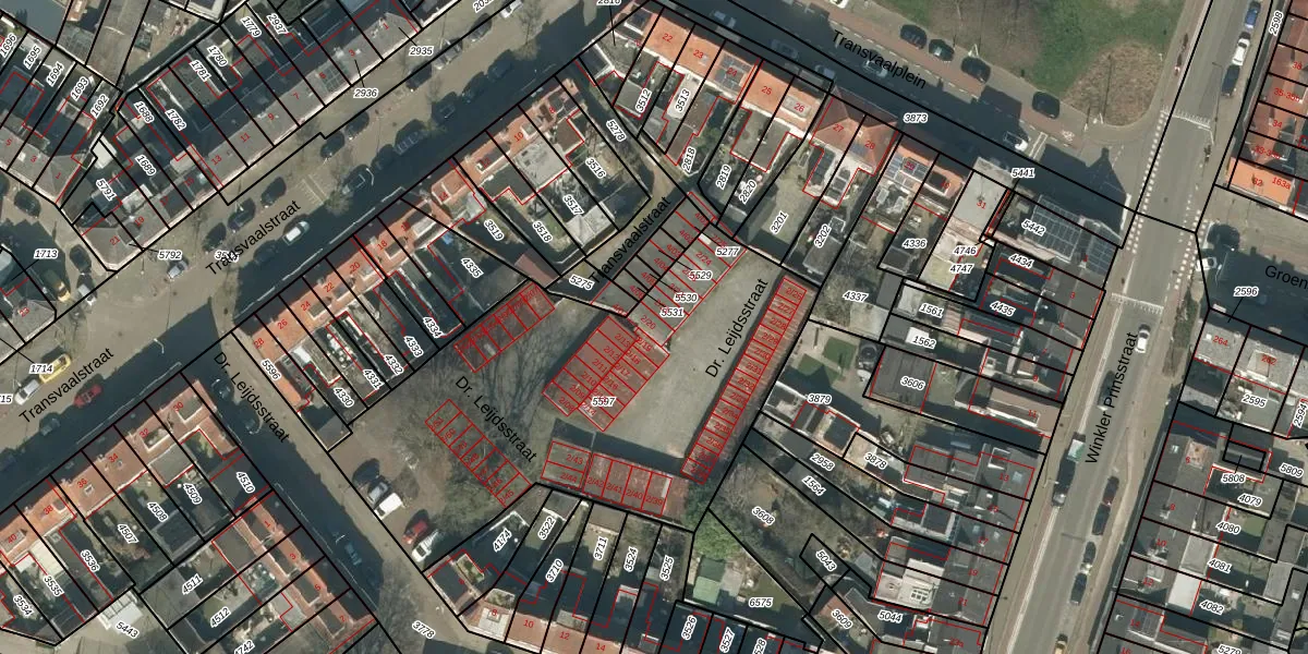 Het perceel waarop Dr. Leijdsstraat 2-20 staat heeft een oppervlakte van 2063 m². Dit is een zeer groot perceel. De perceeloppervlakte wordt geregistreerd door het Kadaster. Gedetailleerde informatie over de maten van dit perceel kunt u vinden in het rapport Kadastrale kaart met maatvoering van Dr. Leijdsstraat 2-20.