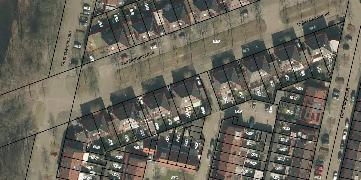 Dubbeldamstraat 30 is gelegen op kadastraal perceel TBG01AF1317. Deze kadastrale aanduiding is uniek en wordt gebruikt door het Kadaster om eigendomsrechten en andere zakelijke rechten vast te leggen. Het perceel maakt onderdeel uit van de kadastrale gemeente Tilburg.