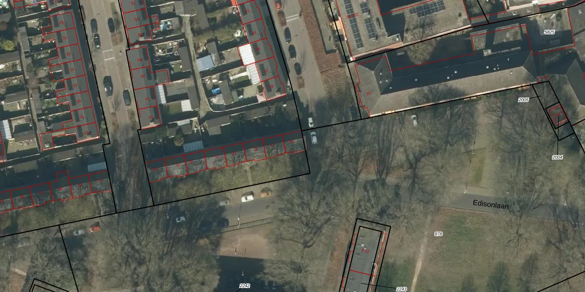 Edisonlaan 25 is gelegen op kadastraal perceel TBG01R5093. Deze kadastrale aanduiding is uniek en wordt gebruikt door het Kadaster om eigendomsrechten en andere zakelijke rechten vast te leggen. Het perceel maakt onderdeel uit van de kadastrale gemeente Tilburg.