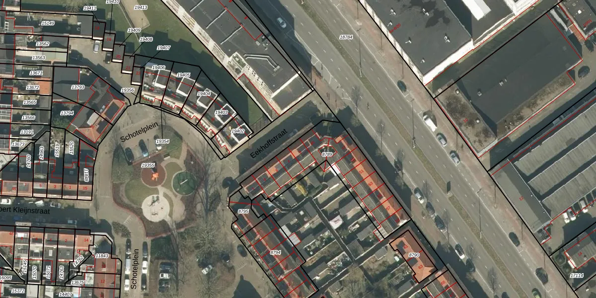 Het perceel waarop Eekhoffstraat 2 staat heeft een oppervlakte van 782 m². Dit is een groot perceel. De perceeloppervlakte wordt geregistreerd door het Kadaster. Gedetailleerde informatie over de maten van dit perceel kunt u vinden in het rapport Kadastrale kaart met maatvoering van Eekhoffstraat 2.