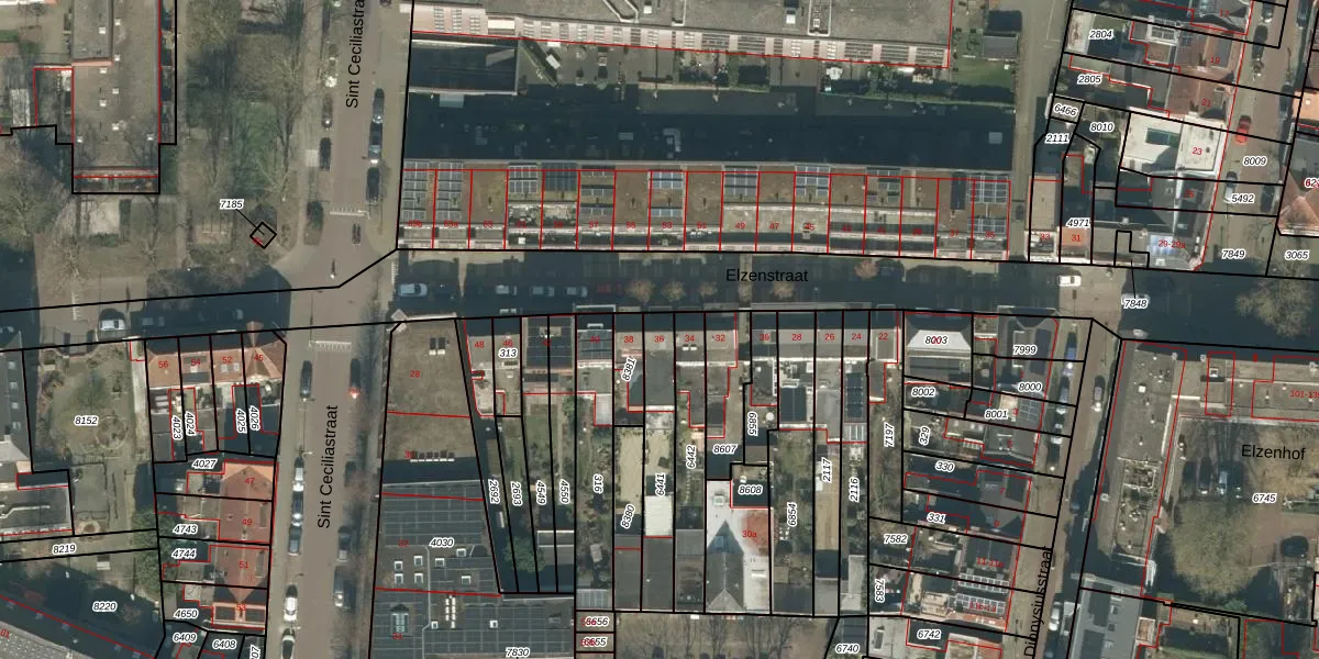 Elzenstraat 36 is gelegen op kadastraal perceel TBG01P6441. Deze kadastrale aanduiding is uniek en wordt gebruikt door het Kadaster om eigendomsrechten en andere zakelijke rechten vast te leggen. Het perceel maakt onderdeel uit van de kadastrale gemeente Tilburg.