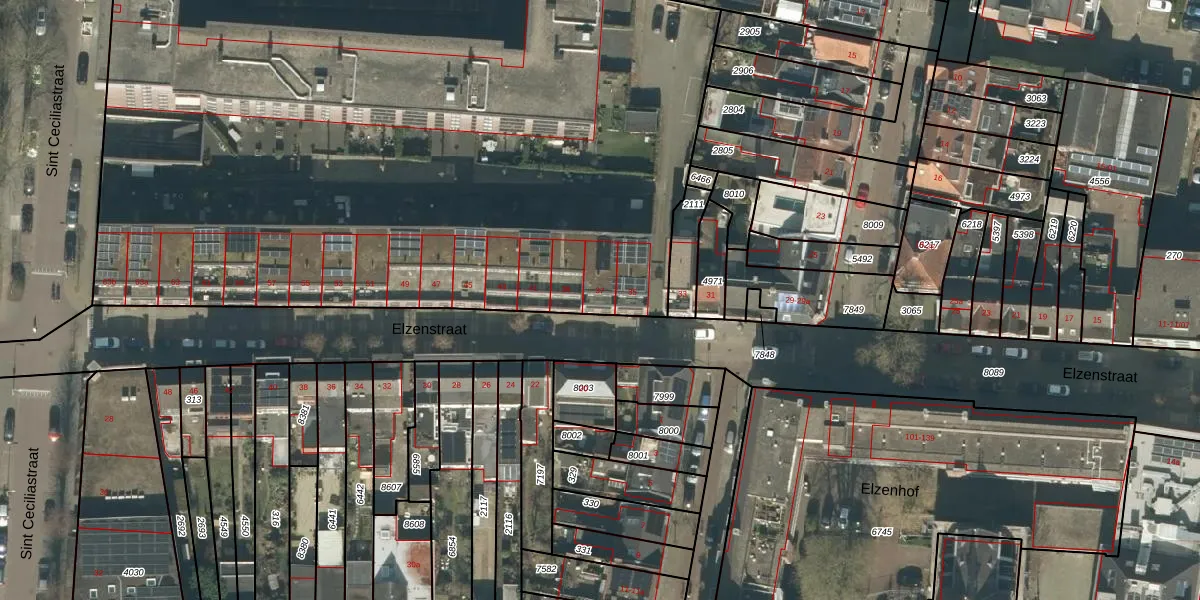 Elzenstraat 37 is gelegen op kadastraal perceel TBG01P7804. Deze kadastrale aanduiding is uniek en wordt gebruikt door het Kadaster om eigendomsrechten en andere zakelijke rechten vast te leggen. Het perceel maakt onderdeel uit van de kadastrale gemeente Tilburg.