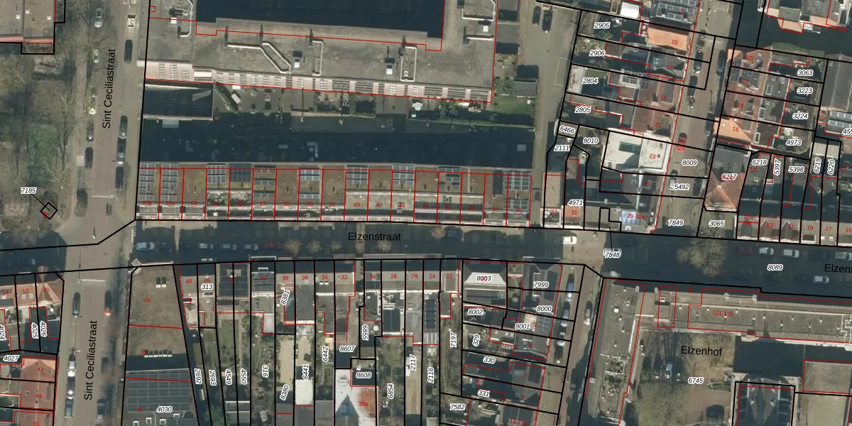 Elzenstraat 43 is gelegen op kadastraal perceel TBG01P7804. Deze kadastrale aanduiding is uniek en wordt gebruikt door het Kadaster om eigendomsrechten en andere zakelijke rechten vast te leggen. Het perceel maakt onderdeel uit van de kadastrale gemeente Tilburg.