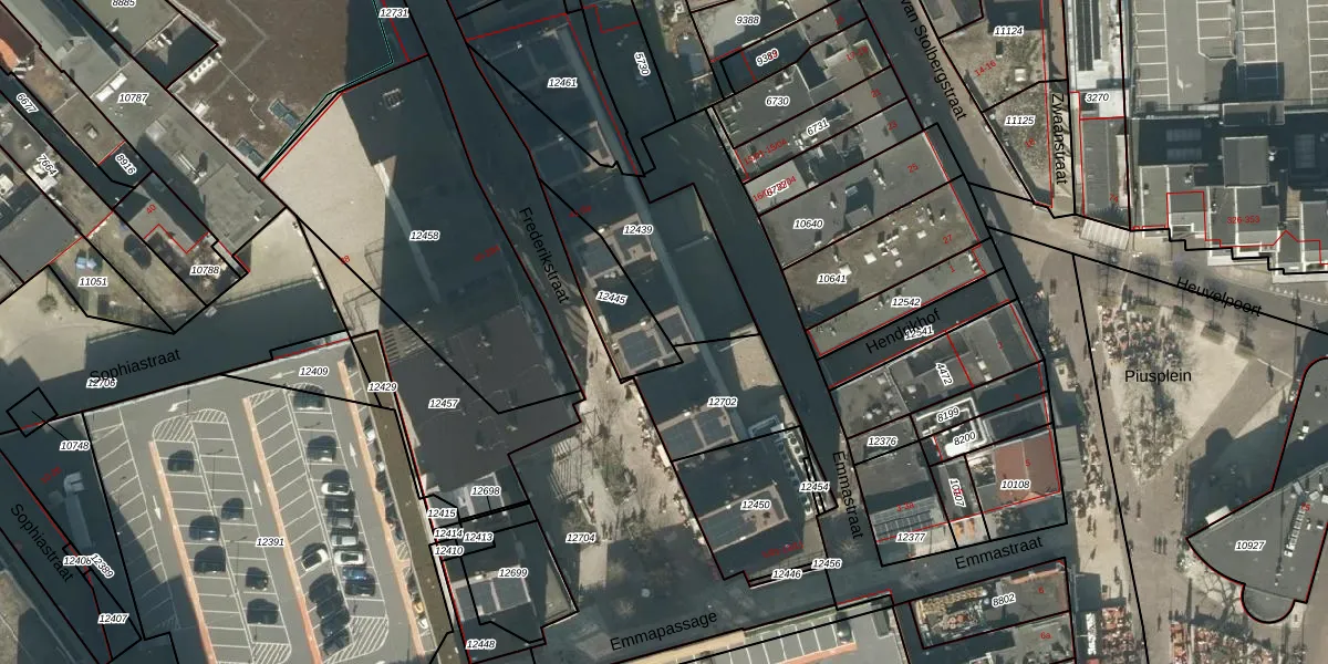 Emmapassage 11-03 is gelegen op kadastraal perceel TBG01M12439. Deze kadastrale aanduiding is uniek en wordt gebruikt door het Kadaster om eigendomsrechten en andere zakelijke rechten vast te leggen. Het perceel maakt onderdeel uit van de kadastrale gemeente Tilburg.