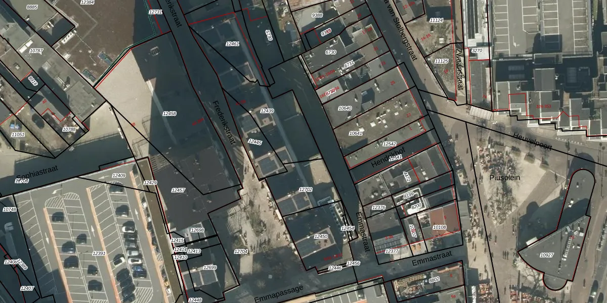 Emmapassage 5-05 is gelegen op kadastraal perceel TBG01M12439. Deze kadastrale aanduiding is uniek en wordt gebruikt door het Kadaster om eigendomsrechten en andere zakelijke rechten vast te leggen. Het perceel maakt onderdeel uit van de kadastrale gemeente Tilburg.