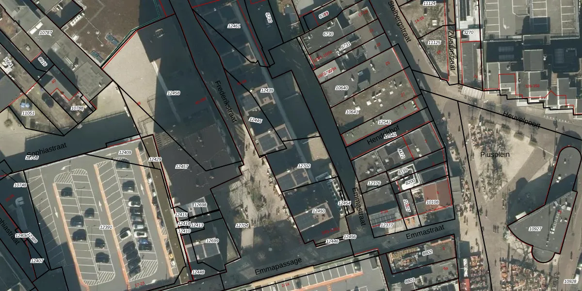 Emmapassage 9-06 is gelegen op kadastraal perceel TBG01M12702. Deze kadastrale aanduiding is uniek en wordt gebruikt door het Kadaster om eigendomsrechten en andere zakelijke rechten vast te leggen. Het perceel maakt onderdeel uit van de kadastrale gemeente Tilburg.