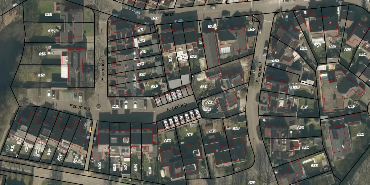 Esperloop 25 is gelegen op kadastraal perceel TBG01AB1443. Deze kadastrale aanduiding is uniek en wordt gebruikt door het Kadaster om eigendomsrechten en andere zakelijke rechten vast te leggen. Het perceel maakt onderdeel uit van de kadastrale gemeente Tilburg.