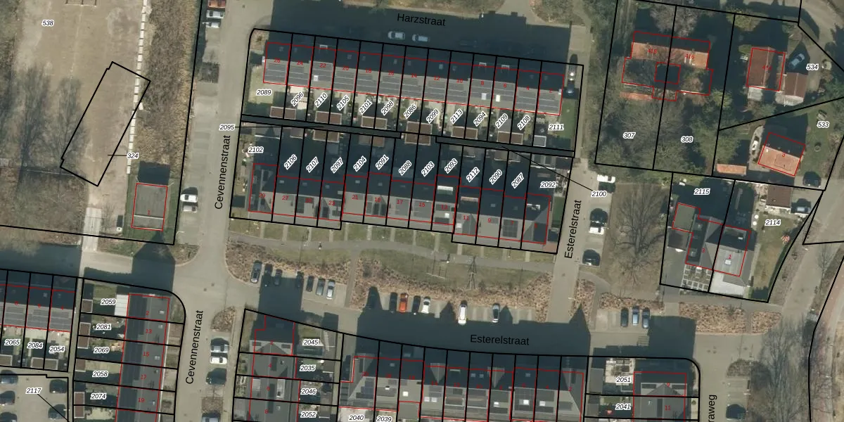 Het perceel waarop Esterelstraat 15 staat heeft een oppervlakte van 120 m². Dit is een middelgroot perceel. De perceeloppervlakte wordt geregistreerd door het Kadaster. Gedetailleerde informatie over de maten van dit perceel kunt u vinden in het rapport Kadastrale kaart met maatvoering van Esterelstraat 15.