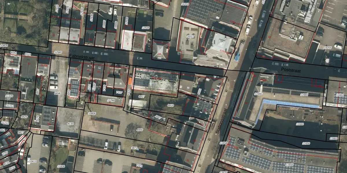 Fabriekstraat 6-21 is gelegen op kadastraal perceel TBG01M8417. Deze kadastrale aanduiding is uniek en wordt gebruikt door het Kadaster om eigendomsrechten en andere zakelijke rechten vast te leggen. Het perceel maakt onderdeel uit van de kadastrale gemeente Tilburg.