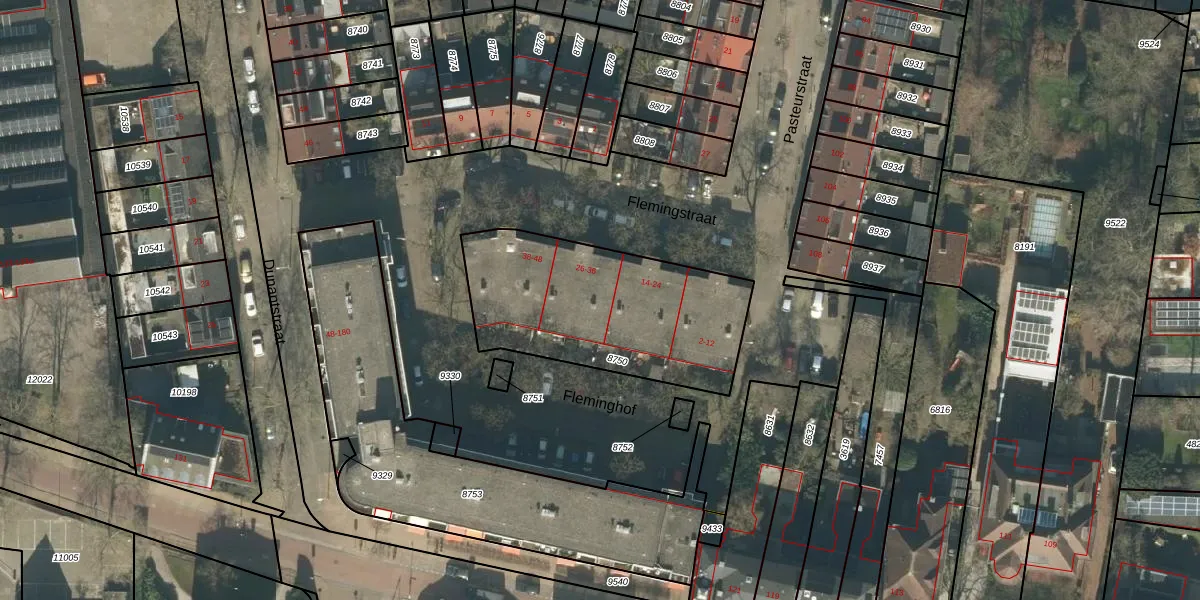 Flemingstraat 30 is gelegen op kadastraal perceel TBG01B8750. Deze kadastrale aanduiding is uniek en wordt gebruikt door het Kadaster om eigendomsrechten en andere zakelijke rechten vast te leggen. Het perceel maakt onderdeel uit van de kadastrale gemeente Tilburg.