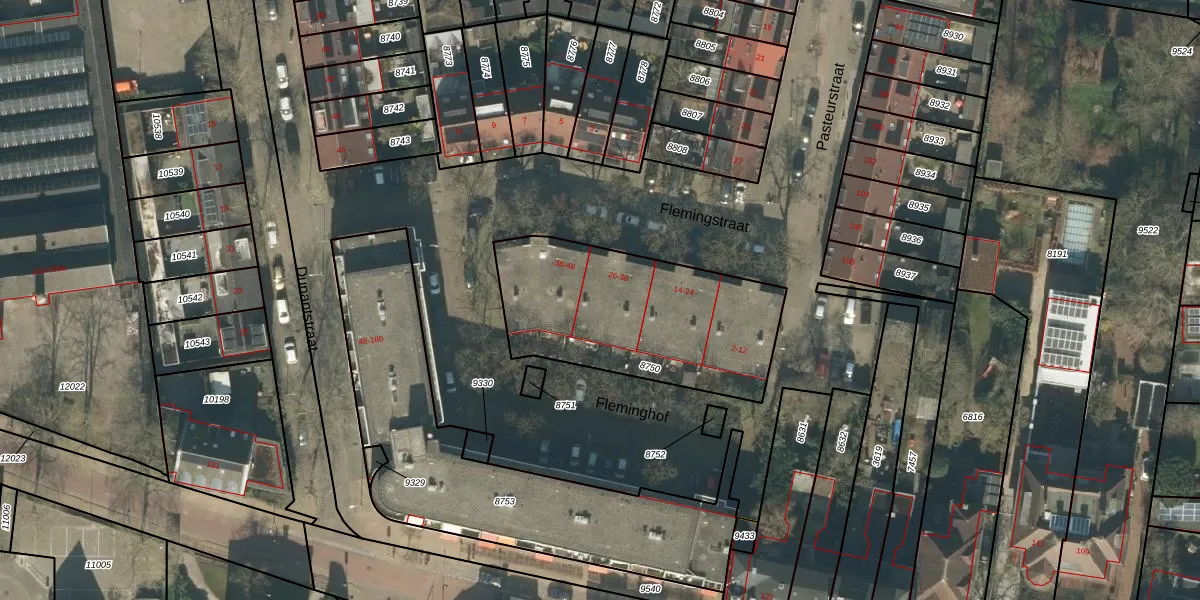Flemingstraat 32 is gelegen op kadastraal perceel TBG01B8750. Deze kadastrale aanduiding is uniek en wordt gebruikt door het Kadaster om eigendomsrechten en andere zakelijke rechten vast te leggen. Het perceel maakt onderdeel uit van de kadastrale gemeente Tilburg.