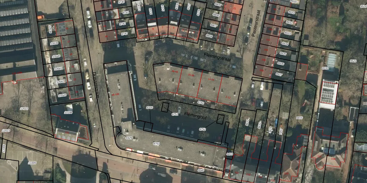 Flemingstraat 36 is gelegen op kadastraal perceel TBG01B8750. Deze kadastrale aanduiding is uniek en wordt gebruikt door het Kadaster om eigendomsrechten en andere zakelijke rechten vast te leggen. Het perceel maakt onderdeel uit van de kadastrale gemeente Tilburg.