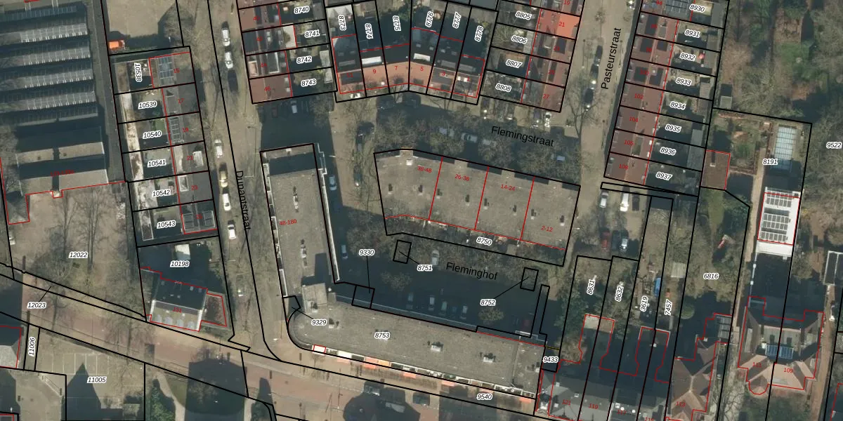 Het perceel waarop Flemingstraat 46 staat heeft een oppervlakte van 916 m². Dit is een groot perceel. De perceeloppervlakte wordt geregistreerd door het Kadaster. Gedetailleerde informatie over de maten van dit perceel kunt u vinden in het rapport Kadastrale kaart met maatvoering van Flemingstraat 46.