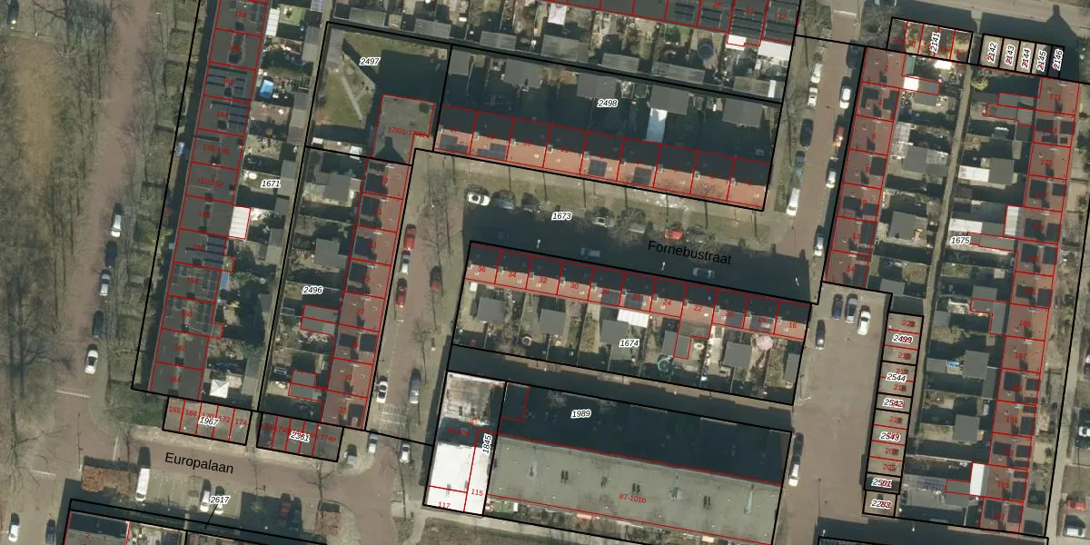 Fornebustraat 32 is gelegen op kadastraal perceel TBG01AC1674. Deze kadastrale aanduiding is uniek en wordt gebruikt door het Kadaster om eigendomsrechten en andere zakelijke rechten vast te leggen. Het perceel maakt onderdeel uit van de kadastrale gemeente Tilburg.
