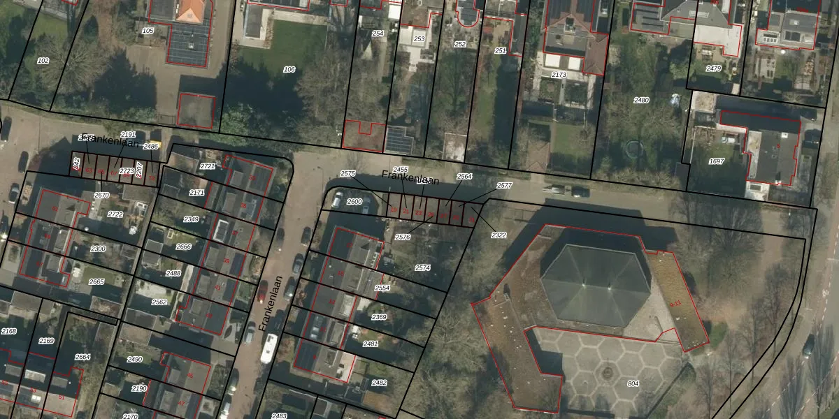 Het perceel waarop Frankenlaan 23 staat heeft een oppervlakte van 18 m². Dit is een klein perceel. De perceeloppervlakte wordt geregistreerd door het Kadaster. Gedetailleerde informatie over de maten van dit perceel kunt u vinden in het rapport Kadastrale kaart met maatvoering van Frankenlaan 23.