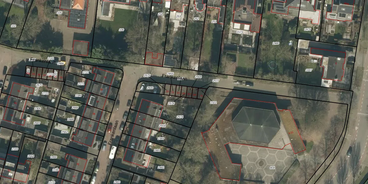 Het perceel waarop Frankenlaan 25 staat heeft een oppervlakte van 18 m². Dit is een klein perceel. De perceeloppervlakte wordt geregistreerd door het Kadaster. Gedetailleerde informatie over de maten van dit perceel kunt u vinden in het rapport Kadastrale kaart met maatvoering van Frankenlaan 25.