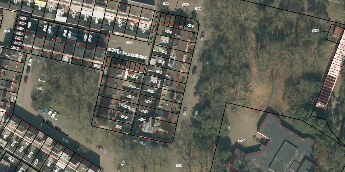 Frans Erensstraat 44 is gelegen op kadastraal perceel TBG01AD1255. Deze kadastrale aanduiding is uniek en wordt gebruikt door het Kadaster om eigendomsrechten en andere zakelijke rechten vast te leggen. Het perceel maakt onderdeel uit van de kadastrale gemeente Tilburg.