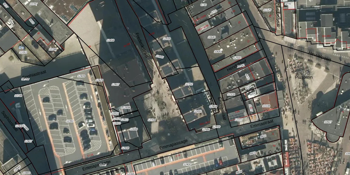 Frederikstraat 53 is gelegen op kadastraal perceel TBG01M12702. Deze kadastrale aanduiding is uniek en wordt gebruikt door het Kadaster om eigendomsrechten en andere zakelijke rechten vast te leggen. Het perceel maakt onderdeel uit van de kadastrale gemeente Tilburg.