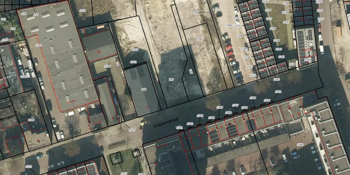 Het perceel waarop Galjoenstraat 13 staat heeft een oppervlakte van 1493 m². Dit is een zeer groot perceel. De perceeloppervlakte wordt geregistreerd door het Kadaster. Gedetailleerde informatie over de maten van dit perceel kunt u vinden in het rapport Kadastrale kaart met maatvoering van Galjoenstraat 13.
