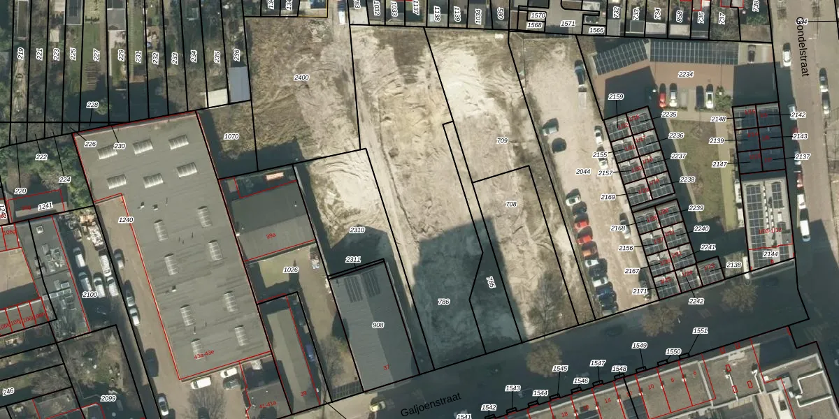 Het perceel waarop Galjoenstraat 15-c staat heeft een oppervlakte van 1493 m². Dit is een zeer groot perceel. De perceeloppervlakte wordt geregistreerd door het Kadaster. Gedetailleerde informatie over de maten van dit perceel kunt u vinden in het rapport Kadastrale kaart met maatvoering van Galjoenstraat 15-c.