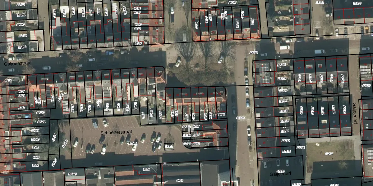 Het perceel waarop Galjoenstraat 84 staat heeft een oppervlakte van 85 m². Dit is een klein perceel. De perceeloppervlakte wordt geregistreerd door het Kadaster. Gedetailleerde informatie over de maten van dit perceel kunt u vinden in het rapport Kadastrale kaart met maatvoering van Galjoenstraat 84.