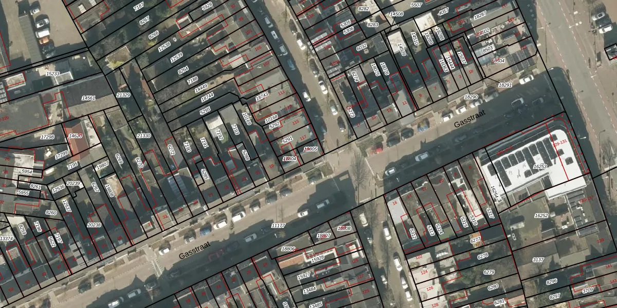 Het perceel waarop Gasstraat 17-a staat heeft een oppervlakte van 44 m². Dit is een klein perceel. De perceeloppervlakte wordt geregistreerd door het Kadaster. Gedetailleerde informatie over de maten van dit perceel kunt u vinden in het rapport Kadastrale kaart met maatvoering van Gasstraat 17-a.