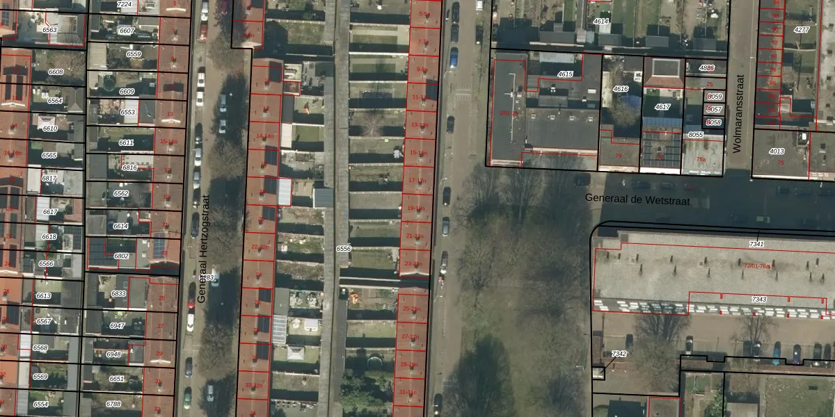 Het perceel waarop Generaal Kockstraat 19-n staat heeft een oppervlakte van 5818 m². Dit is een zeer groot perceel. De perceeloppervlakte wordt geregistreerd door het Kadaster. Gedetailleerde informatie over de maten van dit perceel kunt u vinden in het rapport Kadastrale kaart met maatvoering van Generaal Kockstraat 19-n.