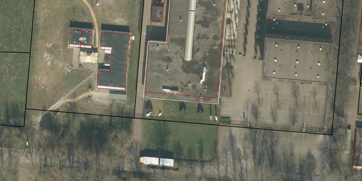 Het perceel waarop Gershwinstraat 10 staat heeft een oppervlakte van 2,2 ha. Dit is een zeer groot perceel. De perceeloppervlakte wordt geregistreerd door het Kadaster. Gedetailleerde informatie over de maten van dit perceel kunt u vinden in het rapport Kadastrale kaart met maatvoering van Gershwinstraat 10.
