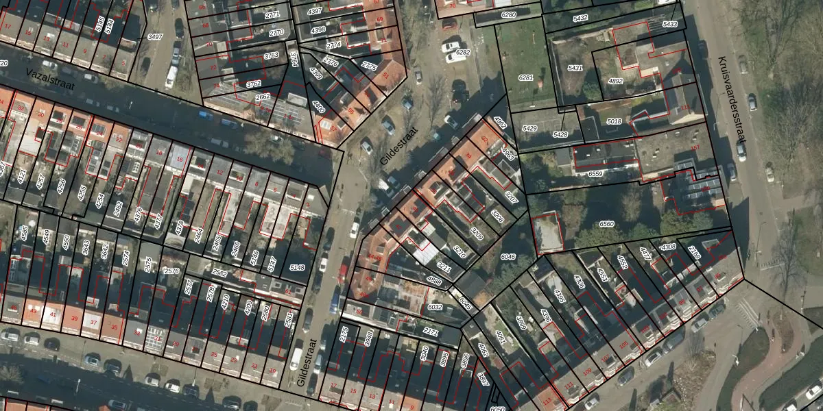 Gildestraat 40 is gelegen op kadastraal perceel TBG01R3210. Deze kadastrale aanduiding is uniek en wordt gebruikt door het Kadaster om eigendomsrechten en andere zakelijke rechten vast te leggen. Het perceel maakt onderdeel uit van de kadastrale gemeente Tilburg.