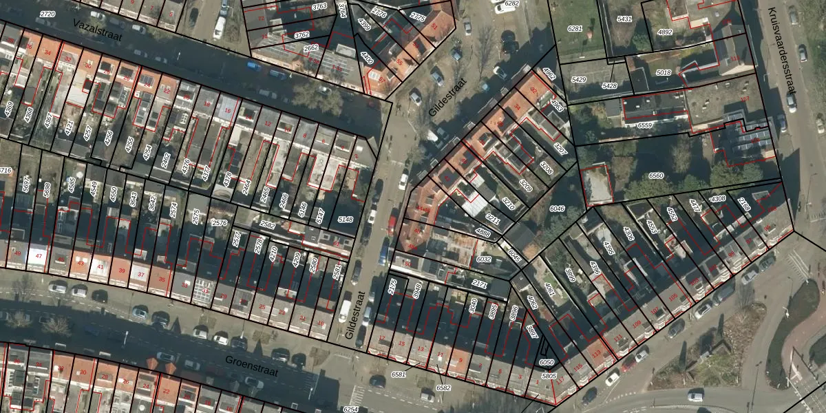 Gildestraat 44 is gelegen op kadastraal perceel TBG01R4888. Deze kadastrale aanduiding is uniek en wordt gebruikt door het Kadaster om eigendomsrechten en andere zakelijke rechten vast te leggen. Het perceel maakt onderdeel uit van de kadastrale gemeente Tilburg.