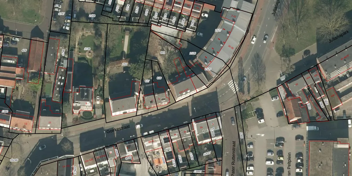 Goirkestraat 1-10 is gelegen op kadastraal perceel TBG01T691. Deze kadastrale aanduiding is uniek en wordt gebruikt door het Kadaster om eigendomsrechten en andere zakelijke rechten vast te leggen. Het perceel maakt onderdeel uit van de kadastrale gemeente Tilburg.