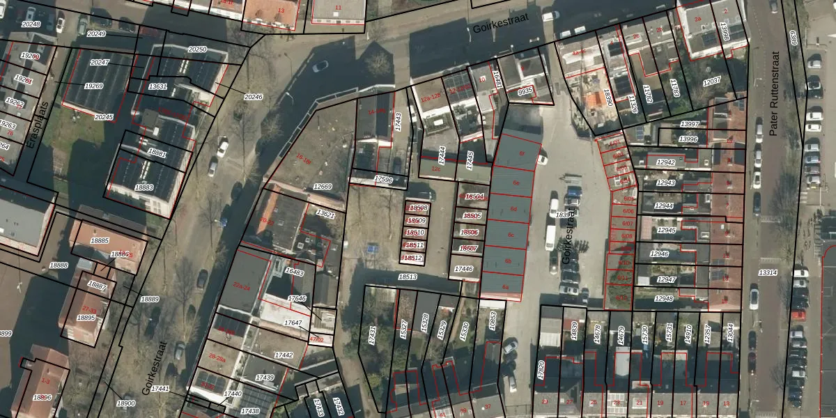 Goirkestraat 12-e is gelegen op kadastraal perceel TBG01N18508. Deze kadastrale aanduiding is uniek en wordt gebruikt door het Kadaster om eigendomsrechten en andere zakelijke rechten vast te leggen. Het perceel maakt onderdeel uit van de kadastrale gemeente Tilburg.