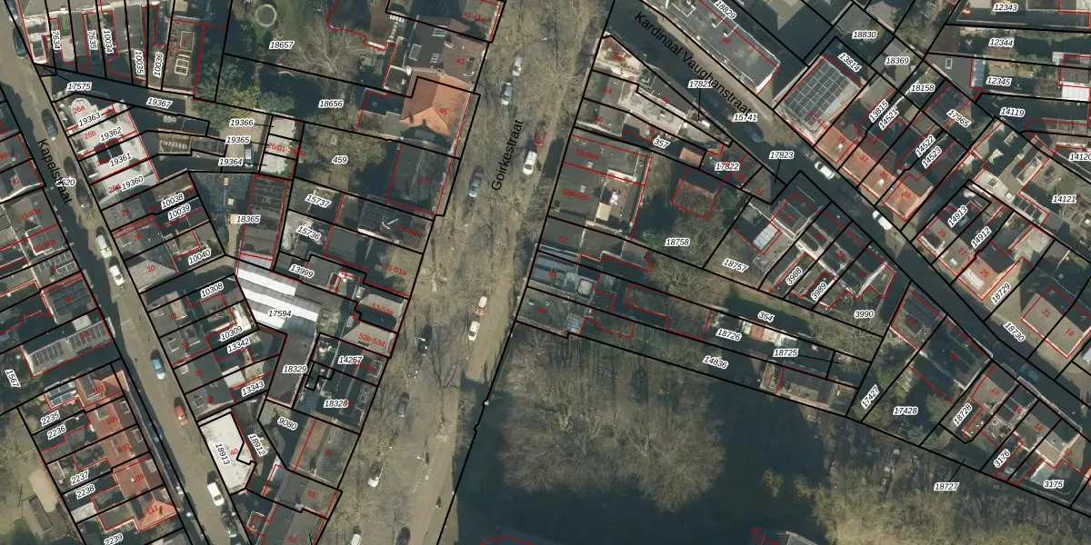 Goirkestraat 64 is gelegen op kadastraal perceel TBG01N18726. Deze kadastrale aanduiding is uniek en wordt gebruikt door het Kadaster om eigendomsrechten en andere zakelijke rechten vast te leggen. Het perceel maakt onderdeel uit van de kadastrale gemeente Tilburg.