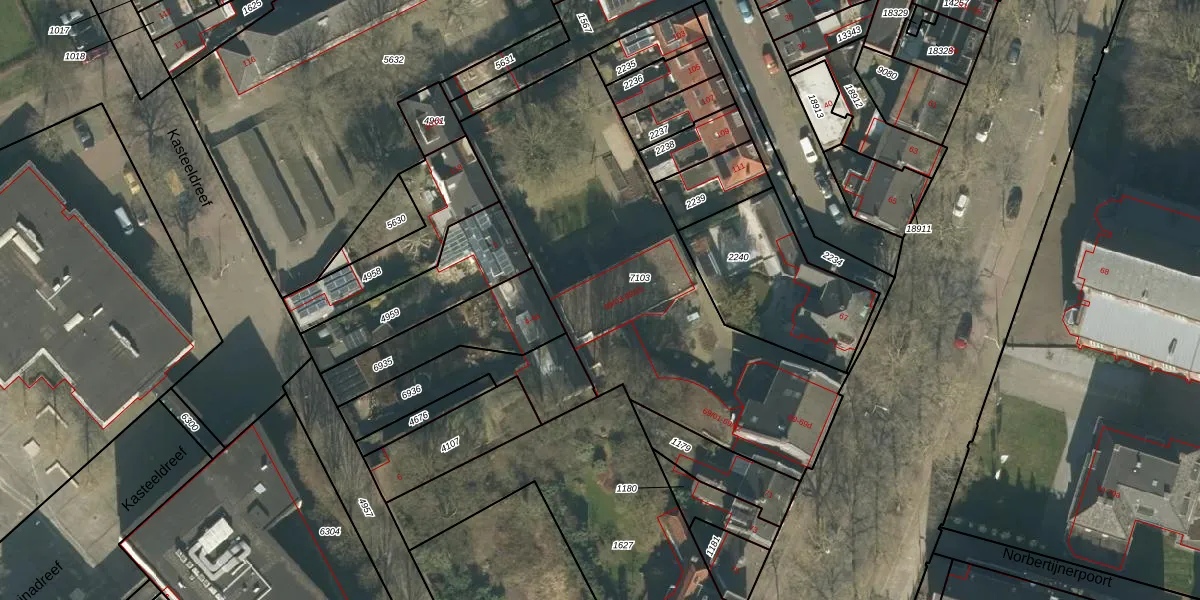 Het perceel waarop het adres ligt is TBG01-O-7103. De afkorting 'TBG01' staat voor kadastrale gemeente Tilburg. Het perceel is met 1786 m² relatief groot. Het gemiddelde ligt in de kadastrale gemeente Tilburg op 1264,36 m². De grootste perceeloppervlakte in de kadastrale gemeente is 87,4 ha. De kleinste oppervlakte bedraagt 0 m². Op het perceel zijn 15 adressen aanwezig. De laatste wijziging in het de Basisregistratie Kadaster (BRK) was op 26-02-2021.