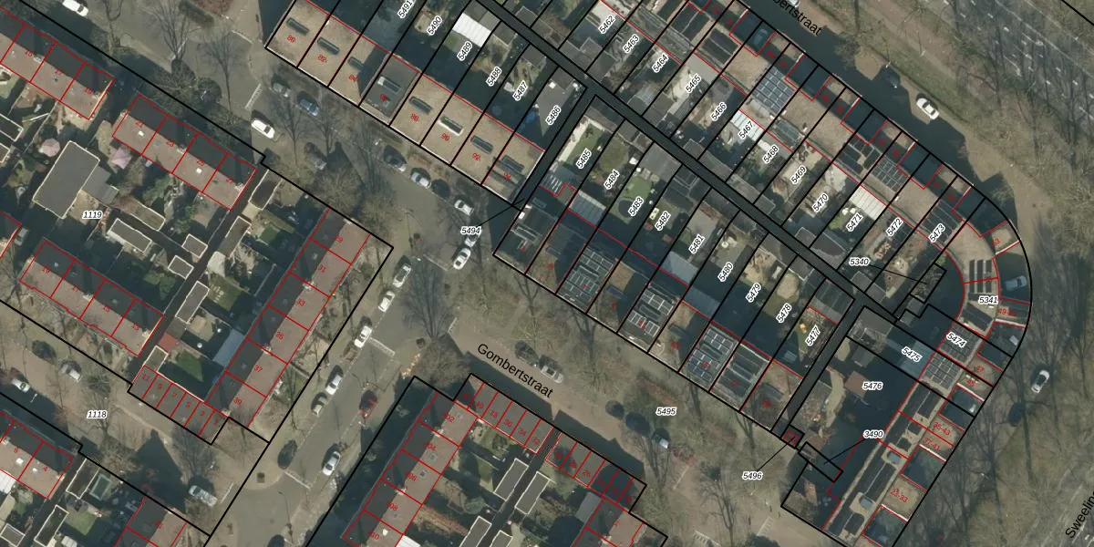 Gombertstraat 5 is gelegen op kadastraal perceel TBG01S5484. Deze kadastrale aanduiding is uniek en wordt gebruikt door het Kadaster om eigendomsrechten en andere zakelijke rechten vast te leggen. Het perceel maakt onderdeel uit van de kadastrale gemeente Tilburg.