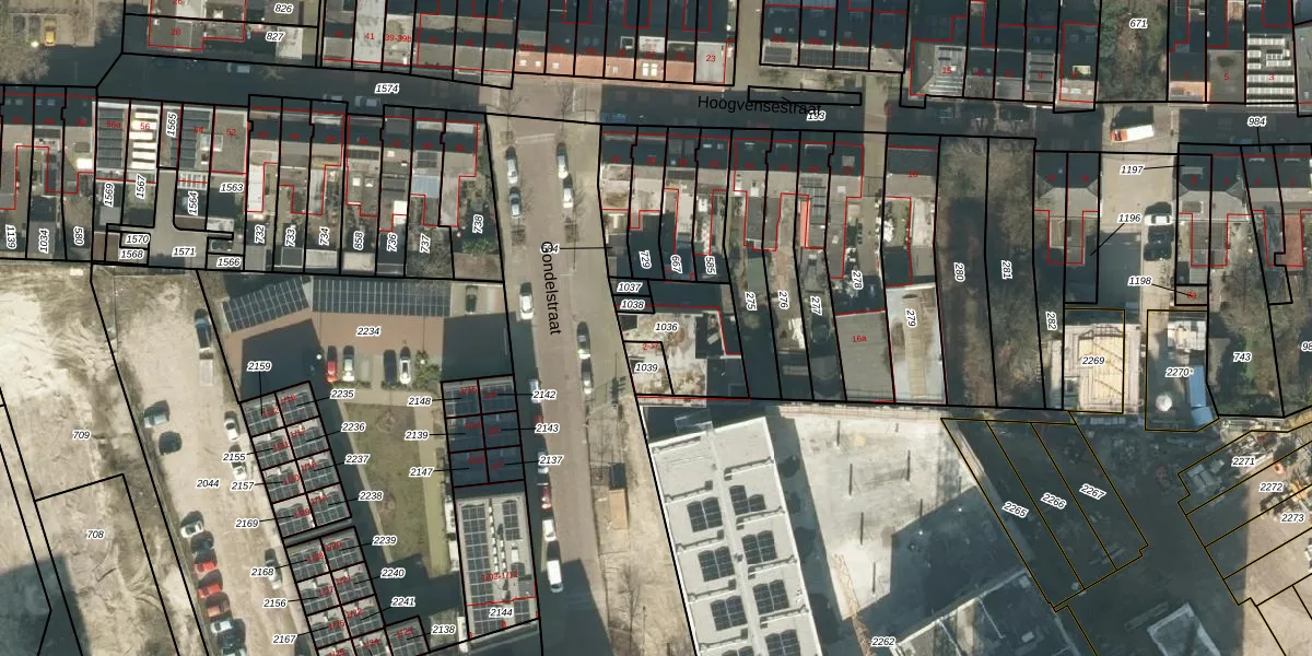 Gondelstraat 2 is gelegen op kadastraal perceel TBG01X1036. Deze kadastrale aanduiding is uniek en wordt gebruikt door het Kadaster om eigendomsrechten en andere zakelijke rechten vast te leggen. Het perceel maakt onderdeel uit van de kadastrale gemeente Tilburg.