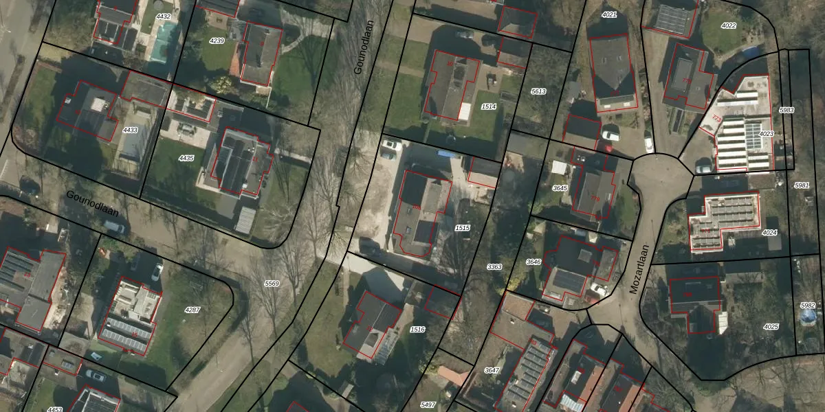 Het perceel waarop Gounodlaan 10-a staat heeft een oppervlakte van 966 m². Dit is een groot perceel. De perceeloppervlakte wordt geregistreerd door het Kadaster. Gedetailleerde informatie over de maten van dit perceel kunt u vinden in het rapport Kadastrale kaart met maatvoering van Gounodlaan 10-a.