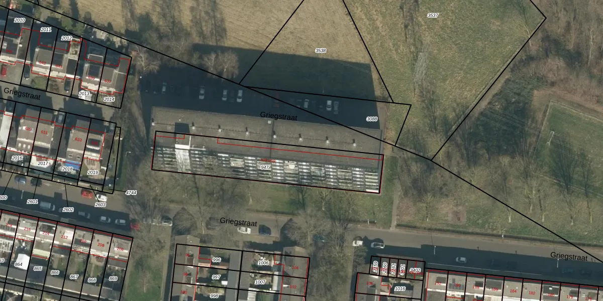 Het perceel waarop Griegstraat 509 staat heeft een oppervlakte van 977 m². Dit is een groot perceel. De perceeloppervlakte wordt geregistreerd door het Kadaster. Gedetailleerde informatie over de maten van dit perceel kunt u vinden in het rapport Kadastrale kaart met maatvoering van Griegstraat 509.