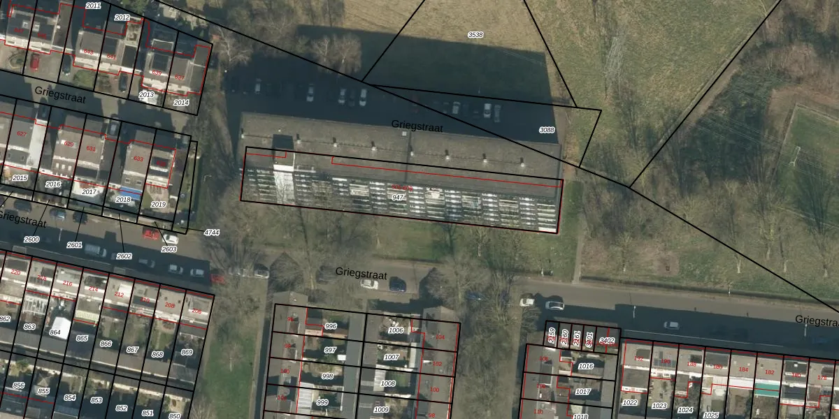 Het perceel waarop Griegstraat 539 staat heeft een oppervlakte van 977 m². Dit is een groot perceel. De perceeloppervlakte wordt geregistreerd door het Kadaster. Gedetailleerde informatie over de maten van dit perceel kunt u vinden in het rapport Kadastrale kaart met maatvoering van Griegstraat 539.