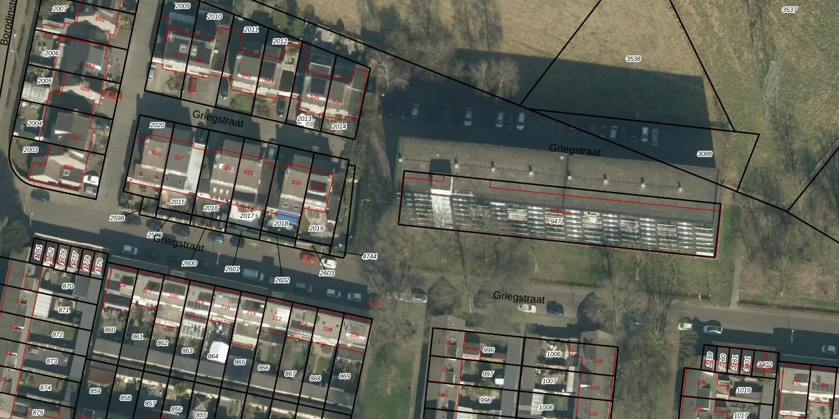 Het perceel waarop Griegstraat 547 staat heeft een oppervlakte van 977 m². Dit is een groot perceel. De perceeloppervlakte wordt geregistreerd door het Kadaster. Gedetailleerde informatie over de maten van dit perceel kunt u vinden in het rapport Kadastrale kaart met maatvoering van Griegstraat 547.