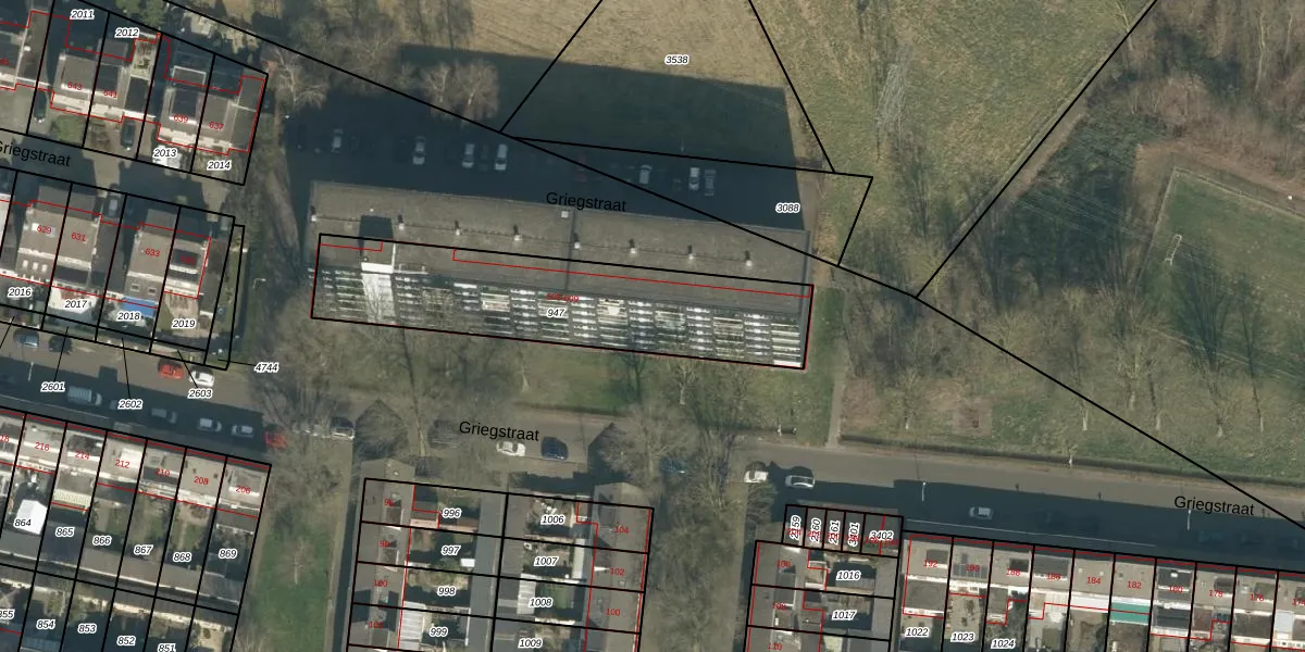 Griegstraat 557 is gelegen op kadastraal perceel TBG01S947. Deze kadastrale aanduiding is uniek en wordt gebruikt door het Kadaster om eigendomsrechten en andere zakelijke rechten vast te leggen. Het perceel maakt onderdeel uit van de kadastrale gemeente Tilburg.