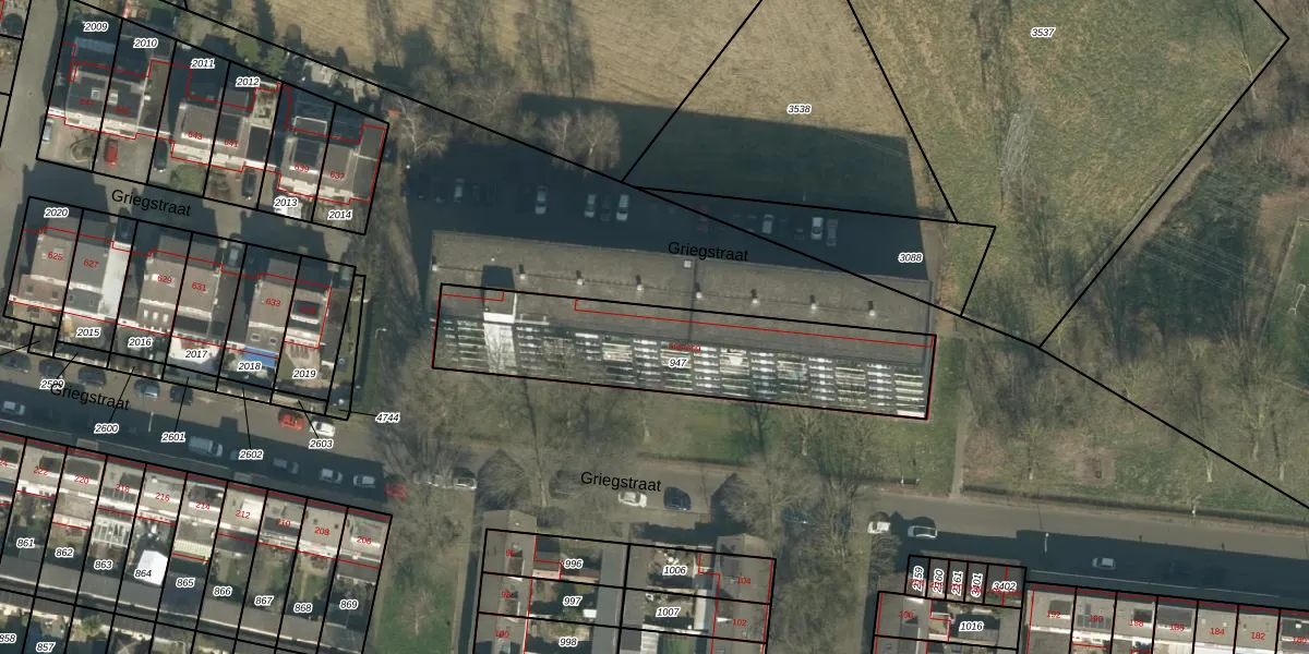 Het perceel waarop Griegstraat 601 staat heeft een oppervlakte van 977 m². Dit is een groot perceel. De perceeloppervlakte wordt geregistreerd door het Kadaster. Gedetailleerde informatie over de maten van dit perceel kunt u vinden in het rapport Kadastrale kaart met maatvoering van Griegstraat 601.