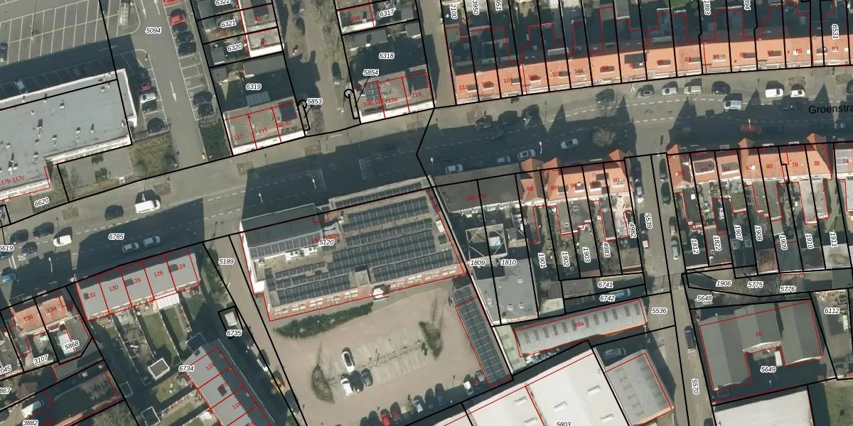 Groenstraat 110-01 is gelegen op kadastraal perceel TBG01R5120. Deze kadastrale aanduiding is uniek en wordt gebruikt door het Kadaster om eigendomsrechten en andere zakelijke rechten vast te leggen. Het perceel maakt onderdeel uit van de kadastrale gemeente Tilburg.