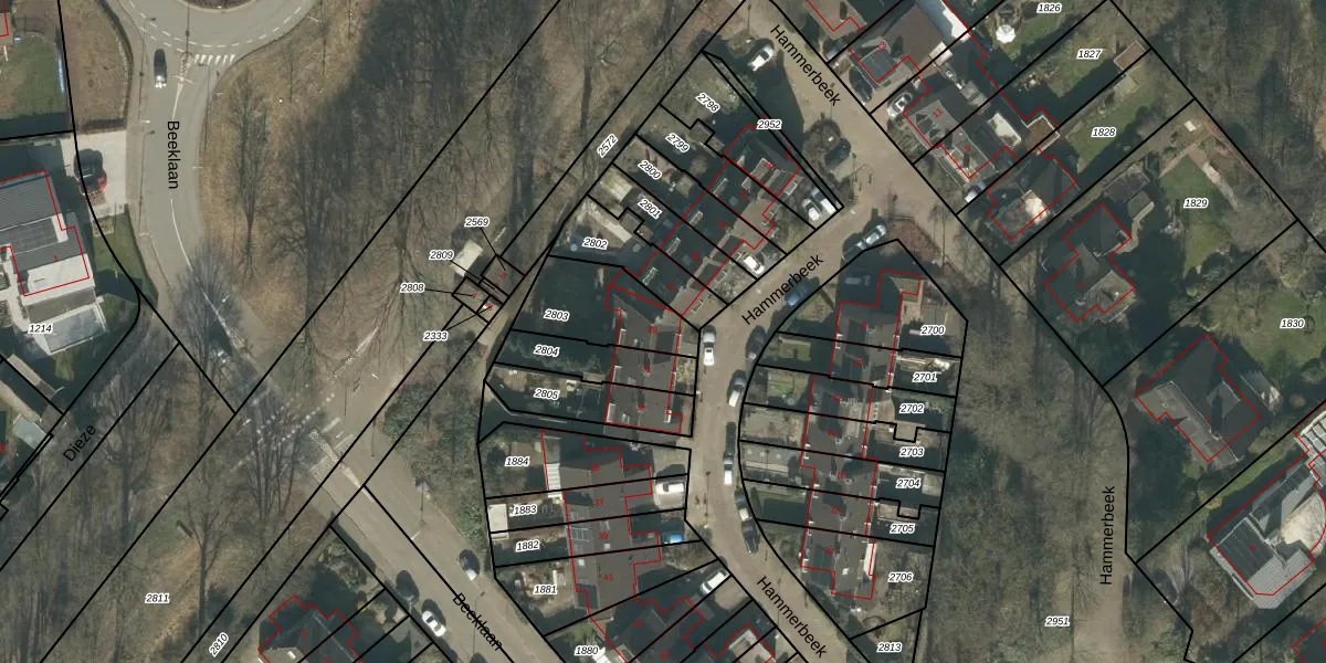 Het perceel waarop Hammerbeek 29 staat heeft een oppervlakte van 263 m². Dit is een middelgroot perceel. De perceeloppervlakte wordt geregistreerd door het Kadaster. Gedetailleerde informatie over de maten van dit perceel kunt u vinden in het rapport Kadastrale kaart met maatvoering van Hammerbeek 29.