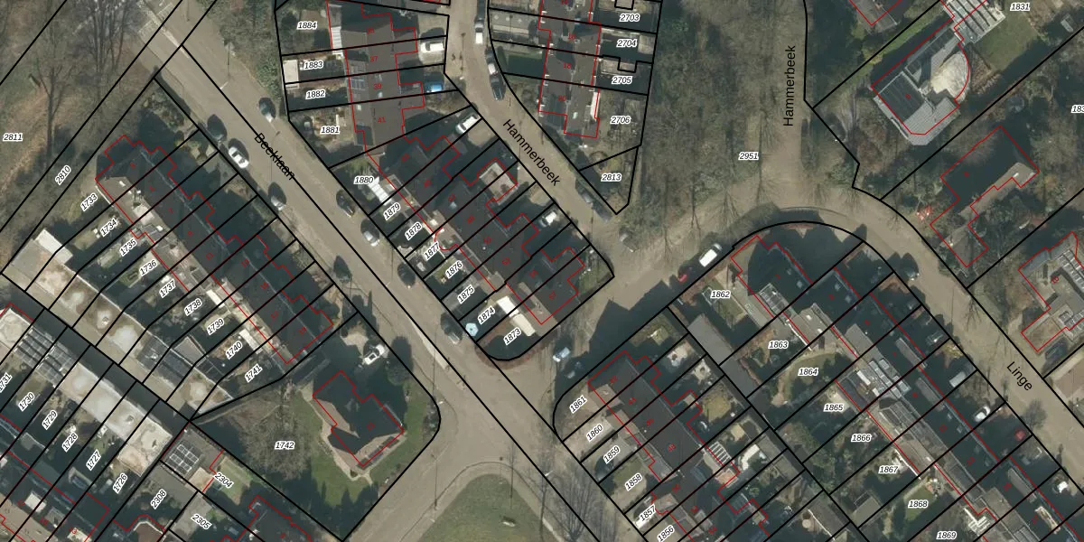 Hammerbeek 55 is gelegen op kadastraal perceel TBG01AA1874. Deze kadastrale aanduiding is uniek en wordt gebruikt door het Kadaster om eigendomsrechten en andere zakelijke rechten vast te leggen. Het perceel maakt onderdeel uit van de kadastrale gemeente Tilburg.
