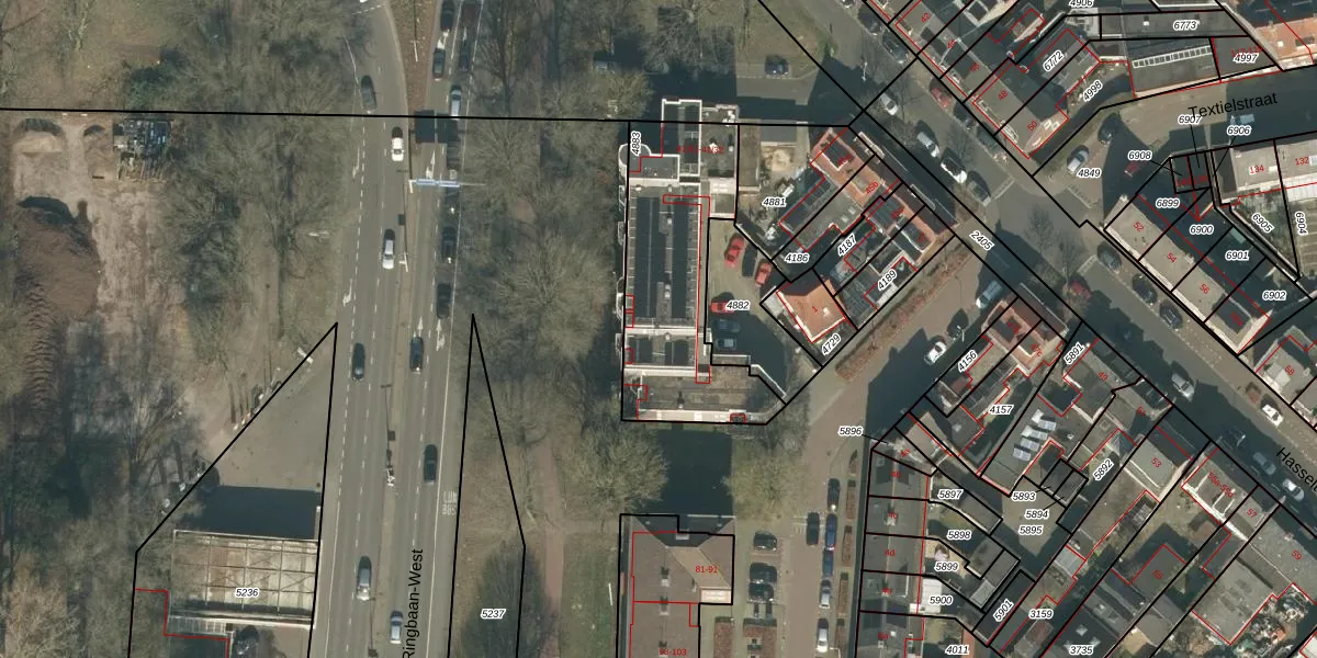 Hasseltstraat 41-21 is gelegen op kadastraal perceel TBG01O4883. Deze kadastrale aanduiding is uniek en wordt gebruikt door het Kadaster om eigendomsrechten en andere zakelijke rechten vast te leggen. Het perceel maakt onderdeel uit van de kadastrale gemeente Tilburg.