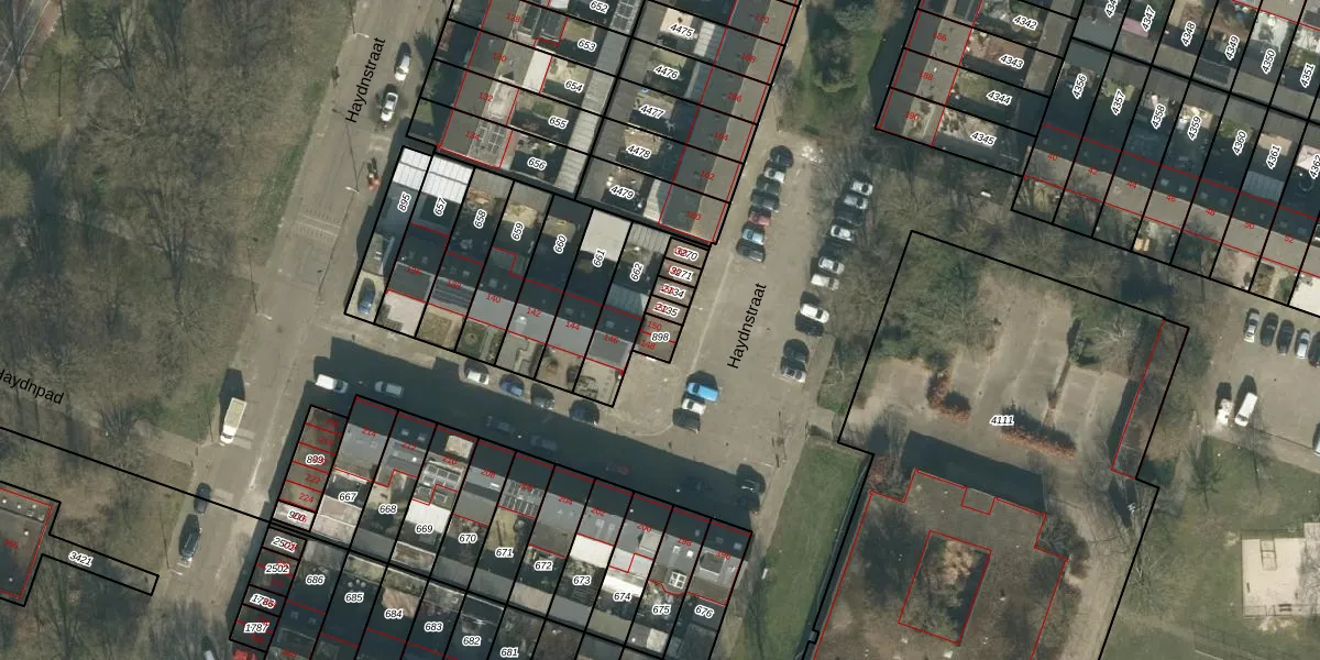 Het perceel waarop Haydnstraat 150 staat heeft een oppervlakte van 36 m². Dit is een klein perceel. De perceeloppervlakte wordt geregistreerd door het Kadaster. Gedetailleerde informatie over de maten van dit perceel kunt u vinden in het rapport Kadastrale kaart met maatvoering van Haydnstraat 150.
