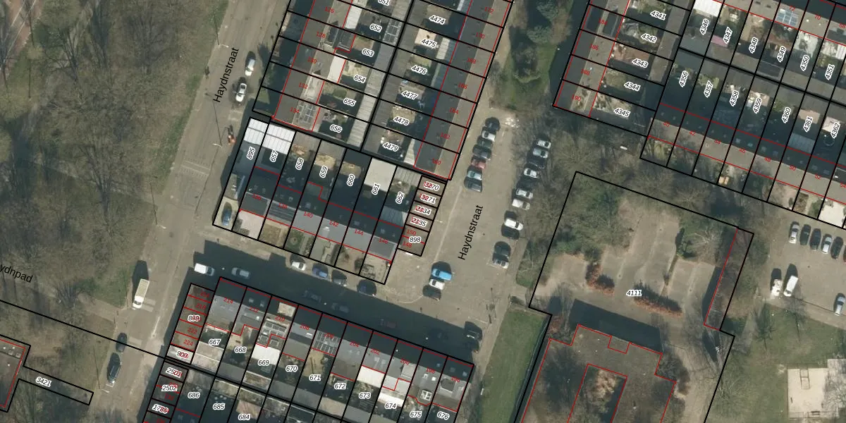 Het perceel waarop Haydnstraat 154 staat heeft een oppervlakte van 18 m². Dit is een klein perceel. De perceeloppervlakte wordt geregistreerd door het Kadaster. Gedetailleerde informatie over de maten van dit perceel kunt u vinden in het rapport Kadastrale kaart met maatvoering van Haydnstraat 154.